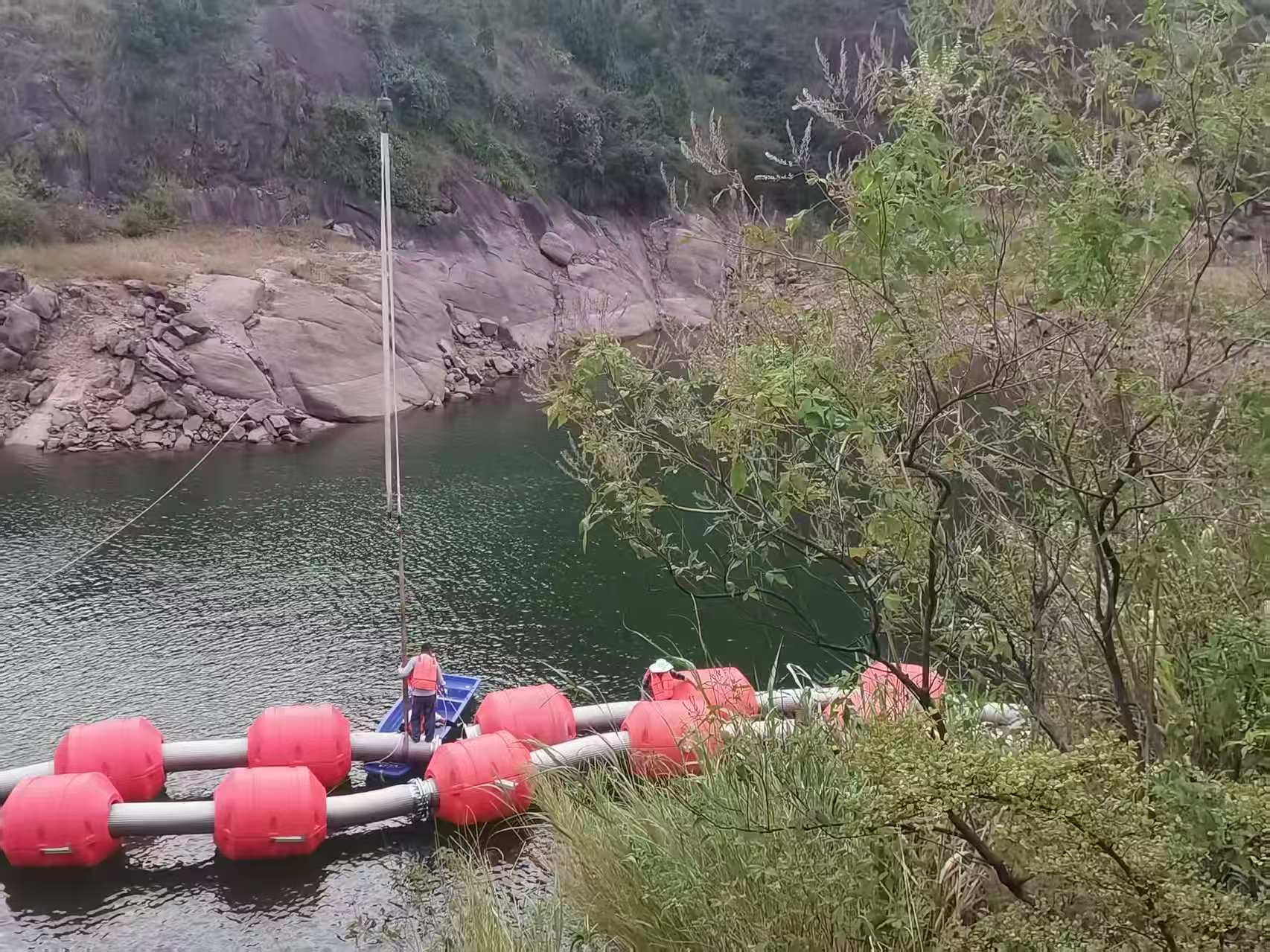 3. 浮管式:HDPE管或鋼管配浮筒漂浮水面,最長可達(dá)800米,適用于河床平緩、取水點(diǎn)遠(yuǎn)的水域。